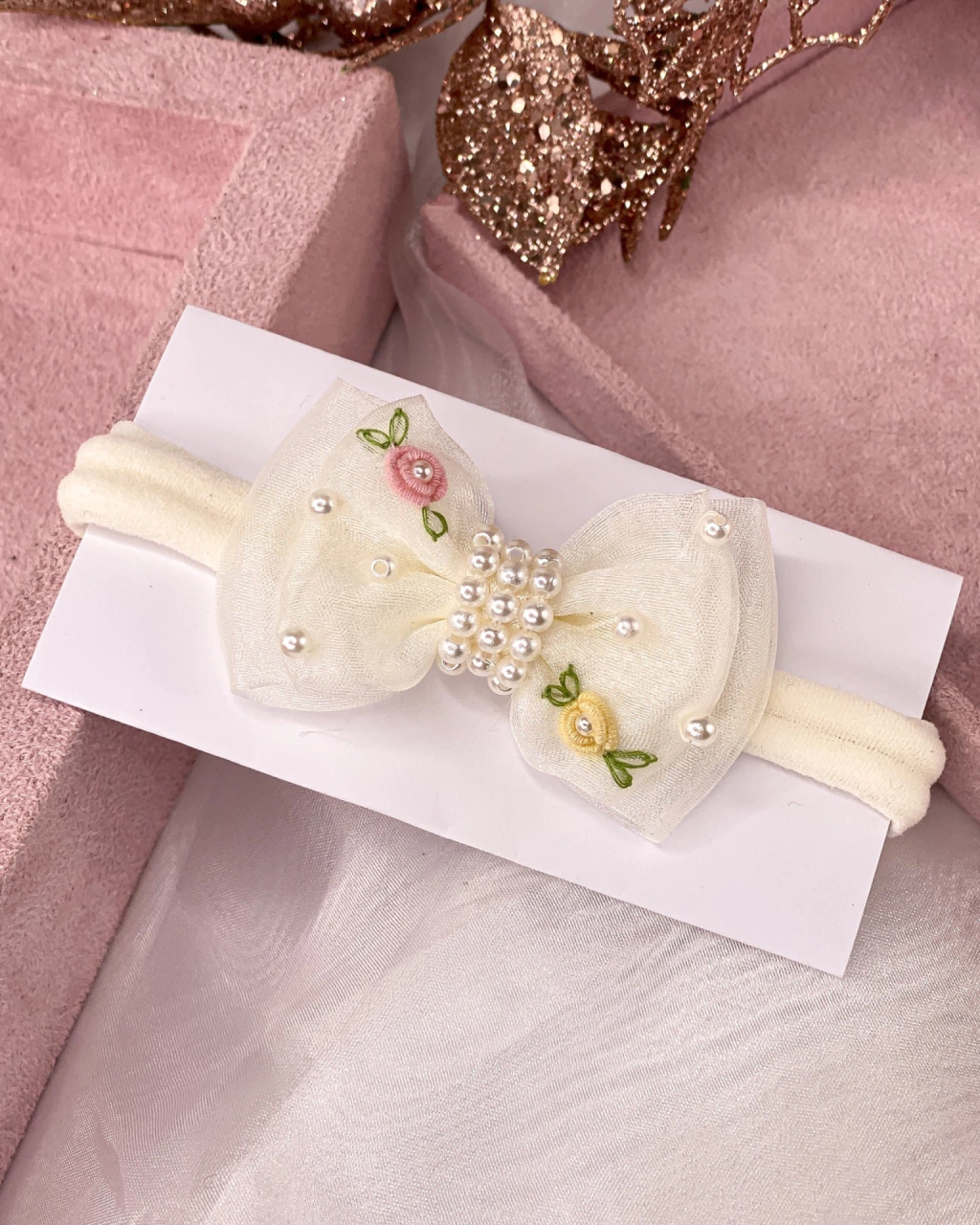 A Faixa une conforto e beleza, ideal para bebês de 0 a 2 anos. Confeccionada com meia de seda ultramacia, ela se ajusta suavemente à cabeça da criança, proporcionando bem-estar durante todo o uso. O laço é feito tecido com aplicações em pérolas.