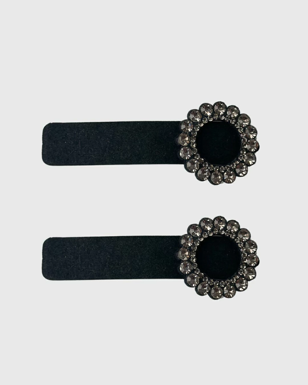 Kit Hair Clip de Fivela em strass adaptado em presilha estilo Tic Tac encapada em suede - Aproximadamente 7,5cm cada.