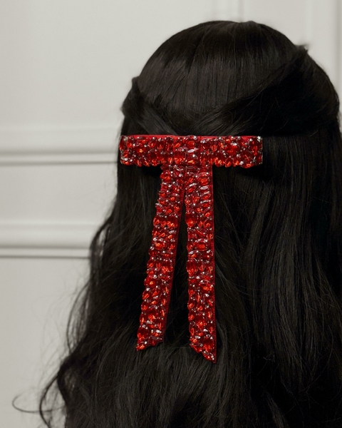 Laço de pedraria adaptado no clipe francês de 8 cm trava dupla para melhor sustentação no cabelo.